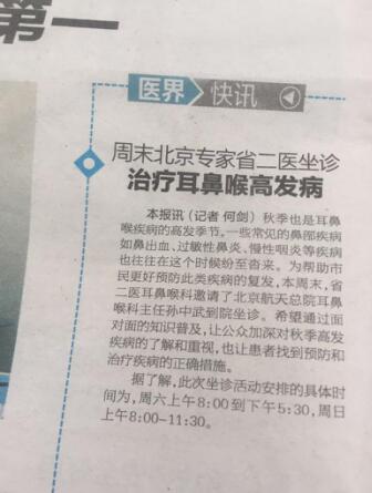 本报记者现场报道,贵州省第二人民医院耳鼻喉科此次邀请孙中武来院坐诊,不仅是为了让患者通过与专家面对面交流疾病,加强公众对秋季高发疾病的认识和了解,让患者找到正确的治疗及预防措施,帮助患者走向康复!了解更详细的省二医咨询,可以拨打咨询热线:0851-86588881。