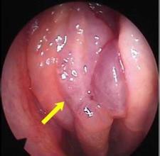 5、巨大息肉若阻塞后鼻孔甚至突入鼻咽部,也可引起听力下降。