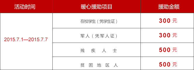 3、享:莘莘学子,辛勤教师、“可爱军人”专享援助300元