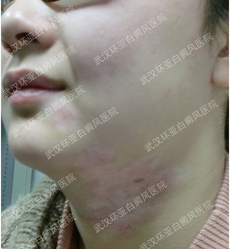 (治疗2个月。白斑大片恢复,患者开始打扮自己,也开始和同学聚会)