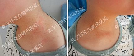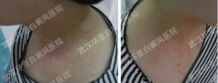 (治疗1个月。白斑变红,患者已经拿掉围巾,开始打扮自己)